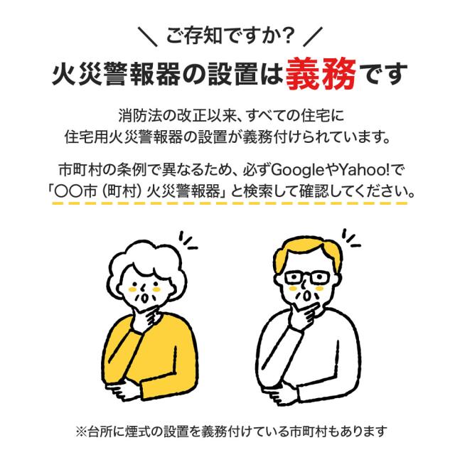 - 火災保険の条件に警報器の設置があります。簡単に取り付けられて安心を得られてありがたいです。