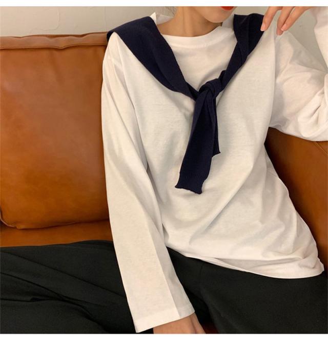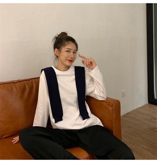 カットソー レディース ホワイト トップス ゆるTシャツ 長袖 秋 春 夏 インナー 重ね着 レイヤード 薄手 女性用 tシャツ シンプル 送料無料