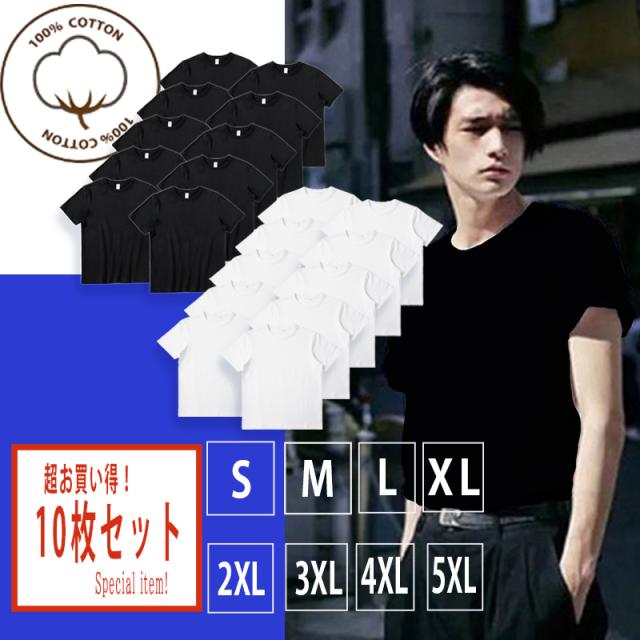 お得な10枚セット Tシャツ 半袖 袖 無地 メンズ レディース ユニセックス 綿 コットン 厚手 丸首 通気性 快適 10枚セット お得 激安 サイズ豊富 S-5XL 黒 白