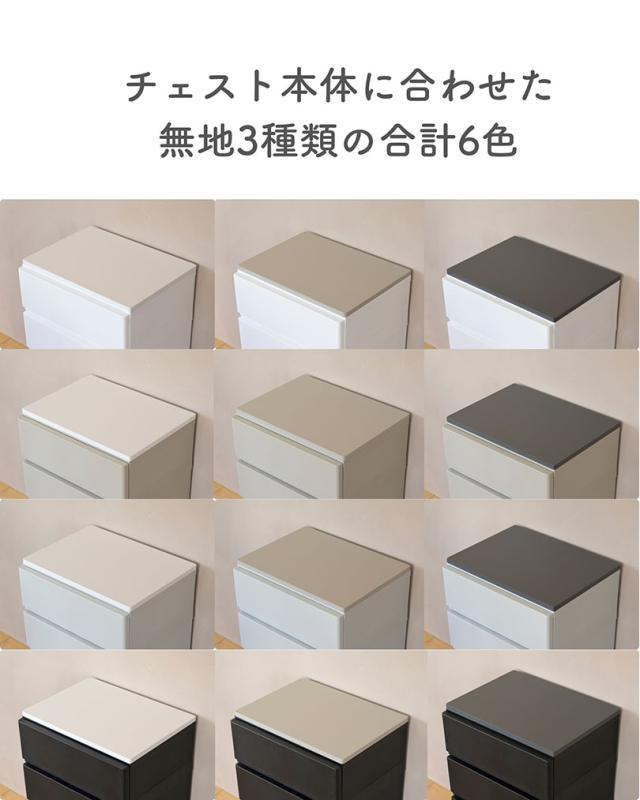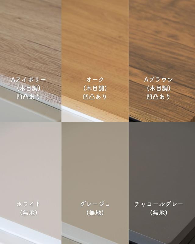 | 商品説明 | ●※2025年1月16日より、色とサイズが追加となりました。 ※本ページは「天板のみ」の販売ページです。チェスト本体は付いておりません。 ●「壁付きチェスト」の上に載せて天板を強化する天板パーツ ●素材は塩化ビニル樹脂化粧繊維板、重さもありしっかりした素材 ●水にも強く、濡れても水をはじいてササッとお手入れ可能 ●角は丸みのあるやさしいデザイン ●載せた後の天板耐荷重:10kg ●木目調の凹凸のある3種類カラー(Aアイボリー、オーク、Aブラウン) ●チェスト本体の色合いに合わせた3色(ホワイト、グレージュ、チャコールグレー) ●対応商品:壁付きチェスト YKC-3/4/5、YKCW-3/4/5 ●天板裏には突起があり、横ずれを防止※上に載せるだけで、完全固定はできませんので、予めご了承ください。 ※チェストを複数台並べる際、天板およびチェストの製造誤差により、同じ段数でも水平にならない可能性があります。 |