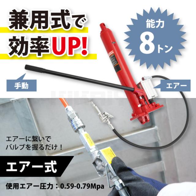 ロングラムジャッキ 8トン エアー 手動 兼用式 油圧シリンダー ジャッキ 油圧工具 クレーン エンジンクレーン 部品 KIKAIYA