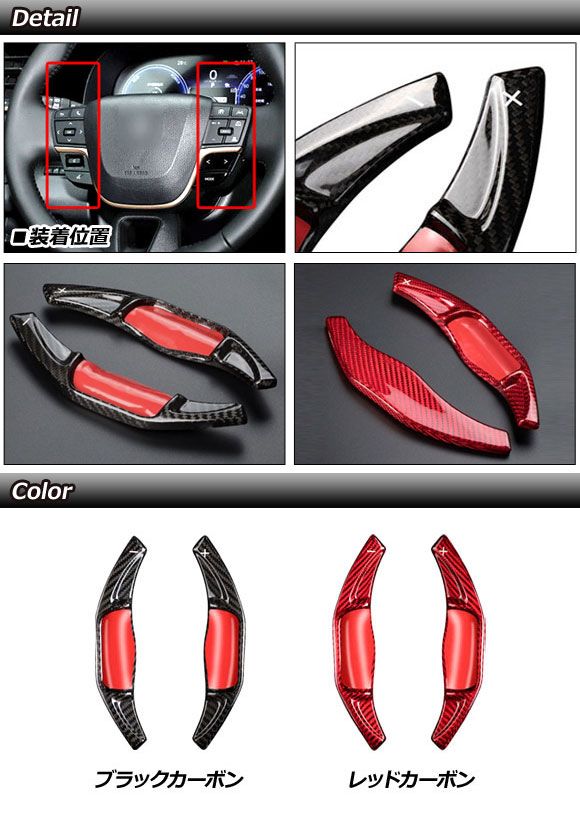パドルシフトカバー トヨタ クラウン 30系 2023年11月〜 レッドカーボン カーボンファイバー製 入数:1セット(2個) AP-IT3527-RDC