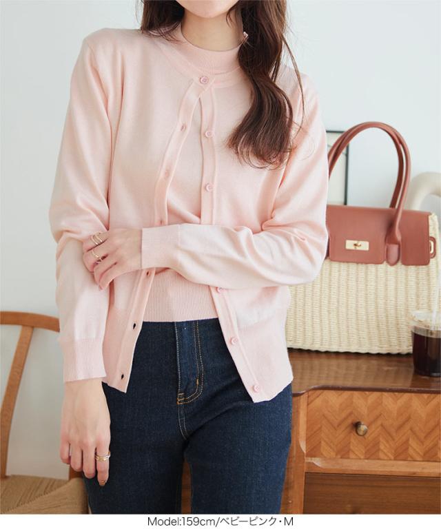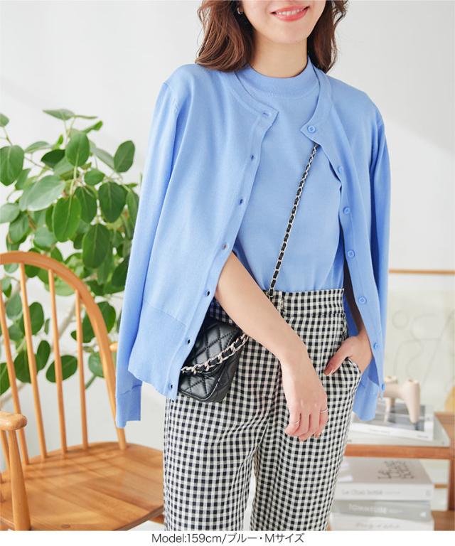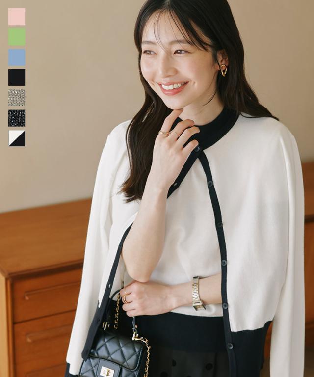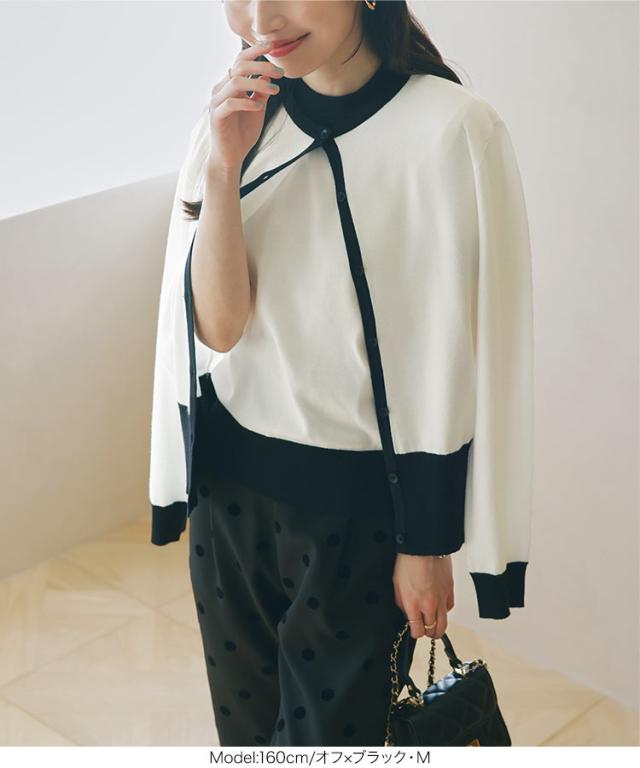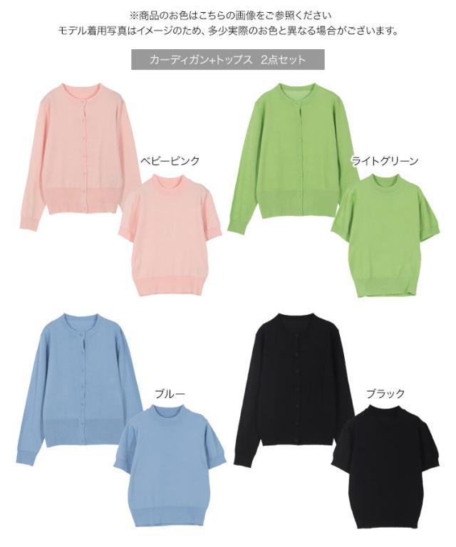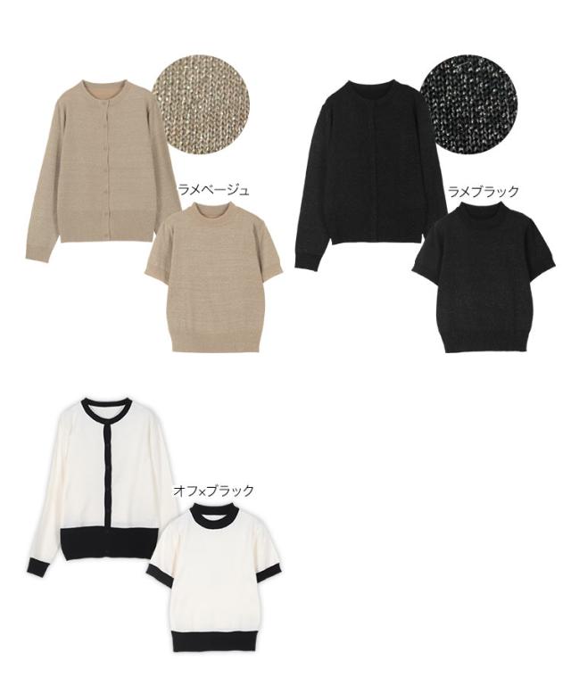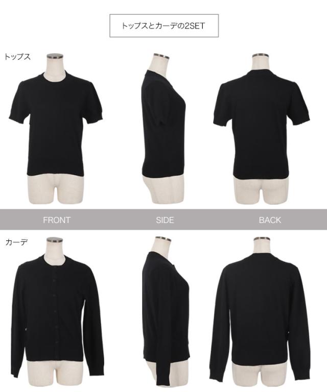 半袖ニットトップス×ニットカーディガンアンサンブル C7078 入荷済 レディース 30代 40代 春夏 新作 アンサンブル カーディガン ニット セーター 羽織り 半袖 長袖 セット Lサイズ バイカラー オフィスカジュアル