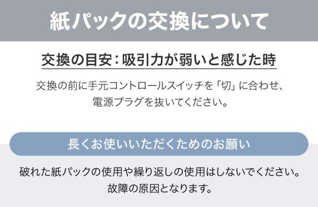 吸引力が弱いと感じた時は紙パックの交換をおすすめします。