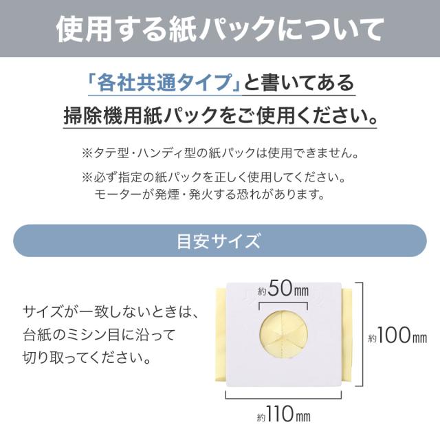 各社共通タイプと書いてある掃除機用紙パックをご使用ください。