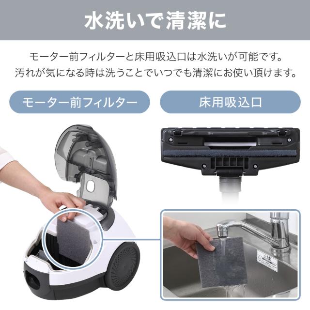 床用吸込口とモーター前フィルターは水洗いが可能です。