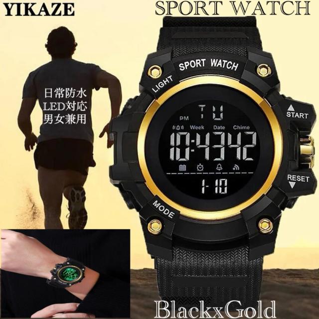 4 腕時計 スポーツ腕時計 時計 デジタル式 LED デジタル腕時計 デジタル 自転車 スポーツ アウトドア キャンプ ランニング 男女兼用 LEDライト 金