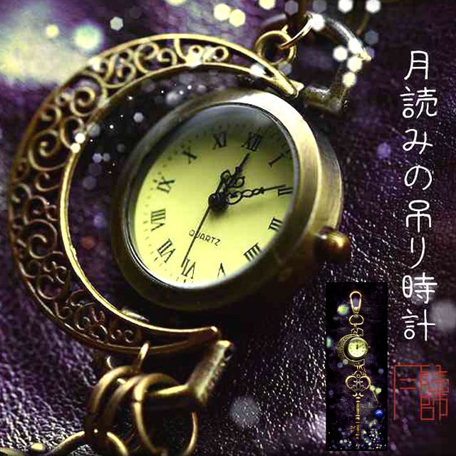 四つの神秘でつくられた月読みの吊り時計 (アンティーク調 月読みの金印 夢 未来 祈願成就)