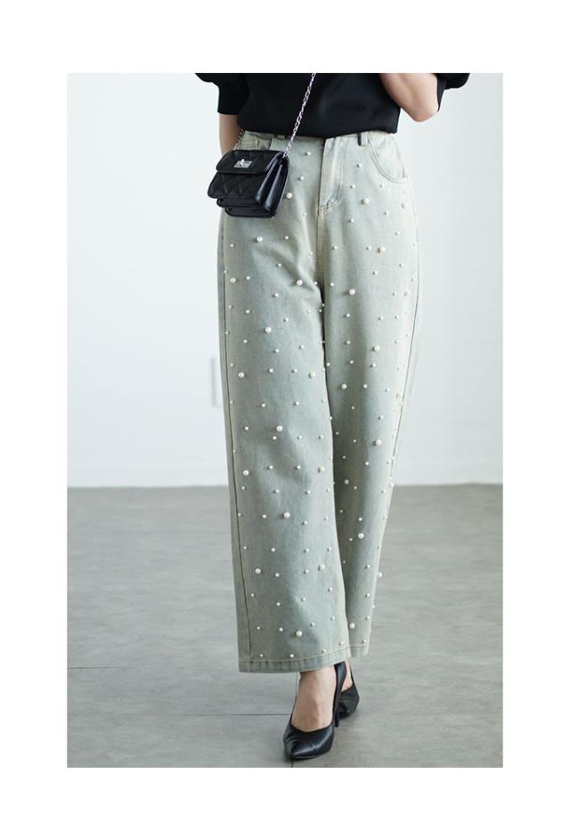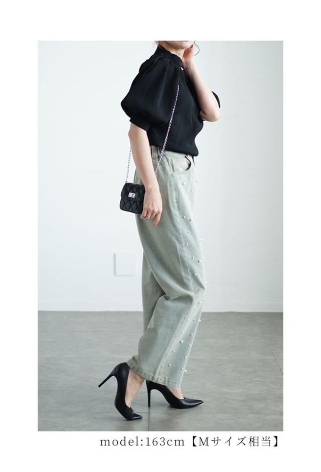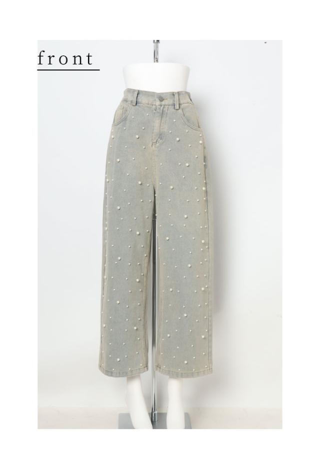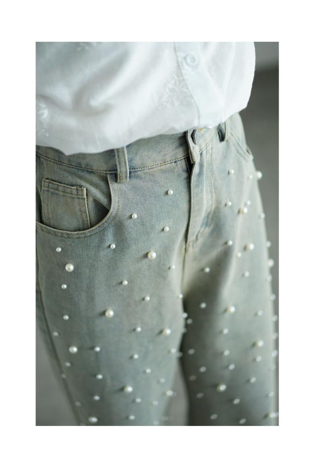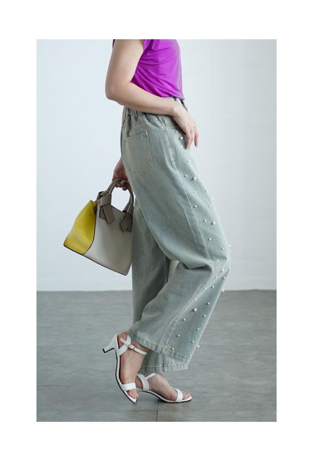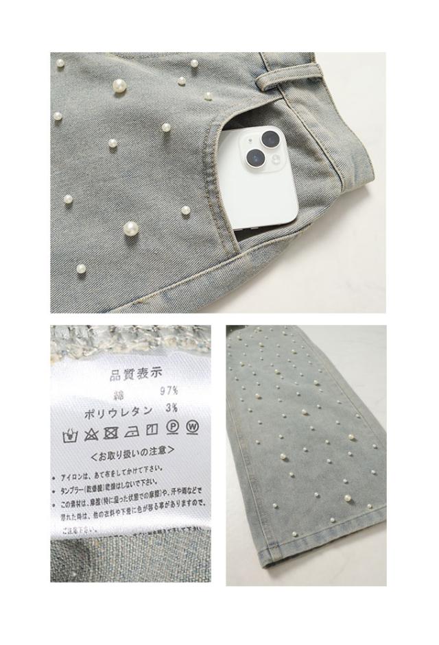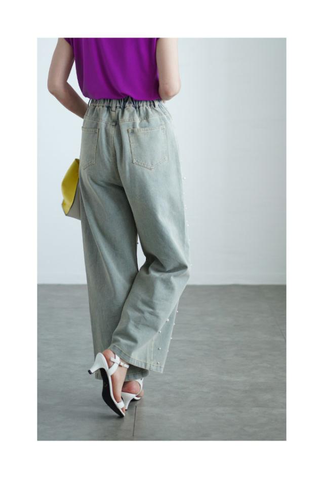 商品名: 艶めくパールのハイウエストデニムパンツ