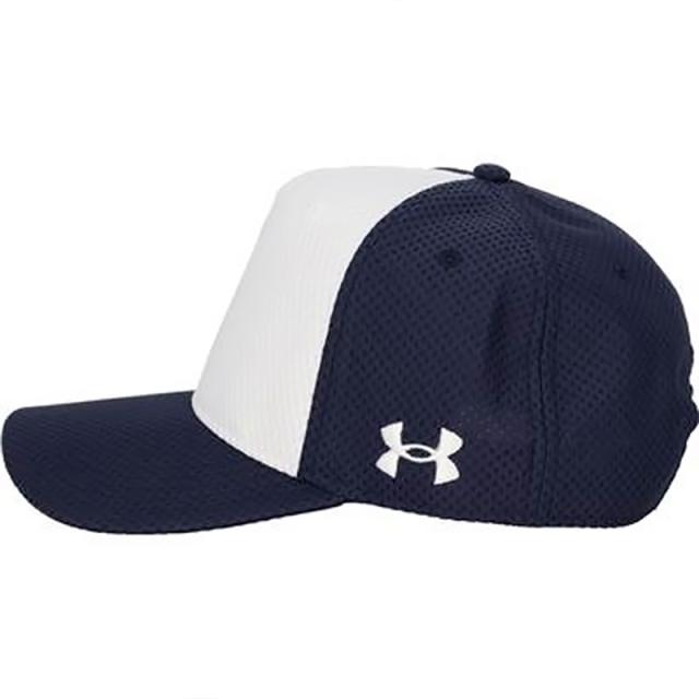 通気性に優れたメッシュを使用。 通気性がしやすいようにサイドにUAロゴ。 スナップアジャスター付き。 |