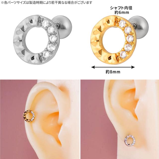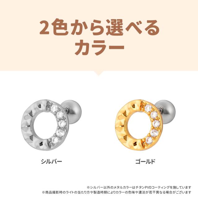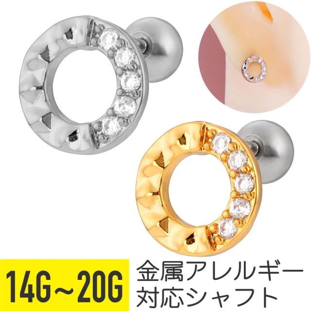 槌目 サークル ジュエル ストレートバーベル 14G 16G 18G 20G サージカルステンレス ジルコニア ヘリックス 軟骨ピアス ボディピアス