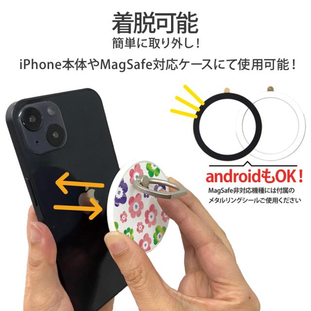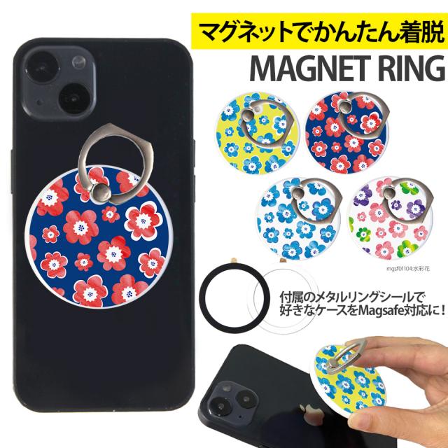 スマホリング MagSafe対応 メタルリング付き 落下防止 片手操作 180度 360度 回転 マグセーフ magsafe デザイン 水彩花 携帯 リング ホルダー スマートフォン 指 かけ 薄型 マグネット 磁石 フィンガーリング iPhone15リング