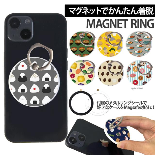 スマホリング MagSafe対応 メタルリング 落下防止 片手操作 180度 360度 回転 マグセーフ magsafe 携帯 リング ホルダー スマートフォン 指 かけ 薄型 マグネット 磁石 フィンガーリング iPhone15リング おにぎり パン 目玉焼き 野菜mix カップケーキ ココア アイスクリーム パンケーキ ソフトクリーム コーヒー お寿司 みそ汁 ゆで卵 漬け物 どんぶり 和菓子 エビフライ ドーナツ おでん 焼き鳥 オムライス トースト カレーライス