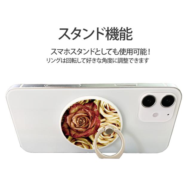 スマホリング MagSafe対応 メタルリング付き 落下防止 片手操作 180度 360度 回転 マグセーフ magsafe デザイン 花パターン 携帯 リング ホルダー スマートフォン 指 かけ 薄型 マグネット 磁石 フィンガーリング iPhone15リング