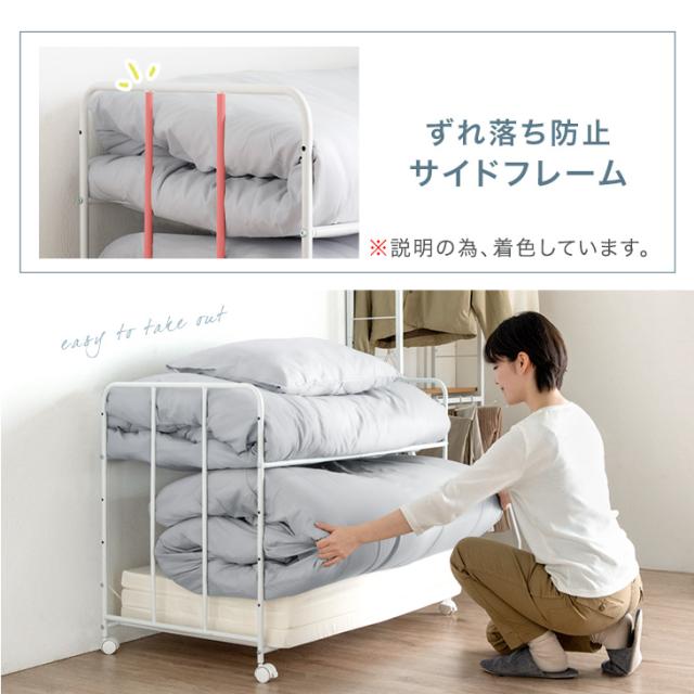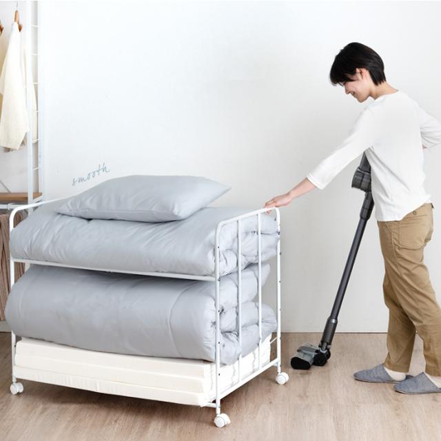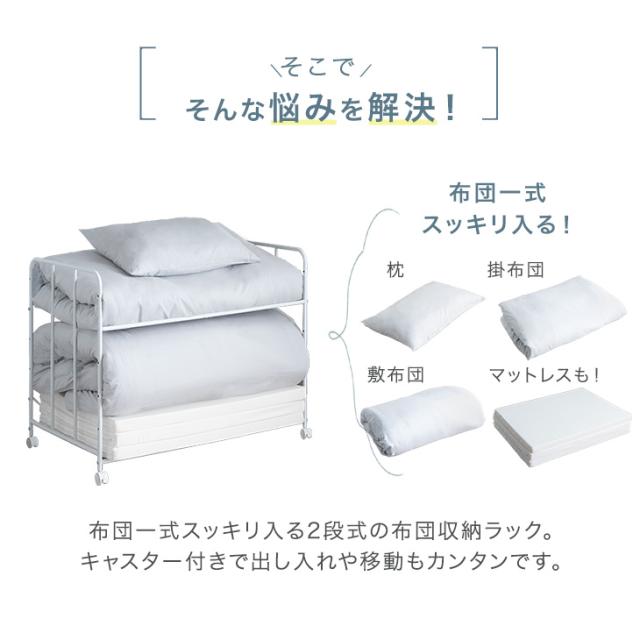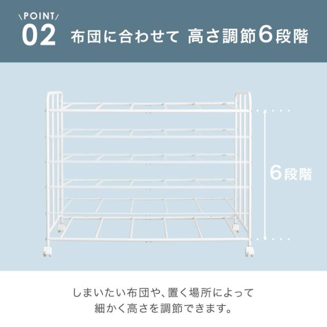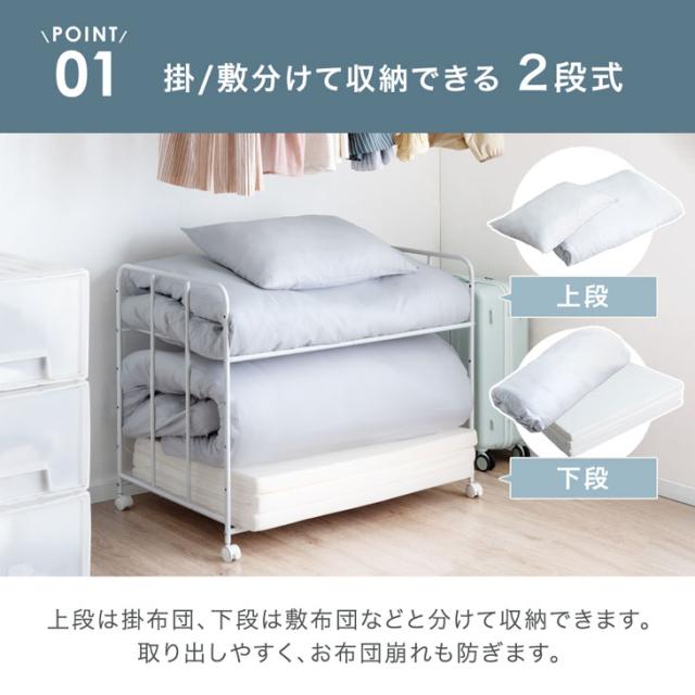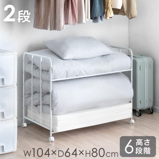 布団収納 ラック 2段 高さ調節 6段階 キャスター付き 寝具 布団 毛布 マットレス 収納 ふとんラック 布団ラック 押し入れ収納ラック 布団収納ラック 押入れ 押入れ収納 ふとん収納 キャスター 収納ワゴン 収納棚 クローゼット