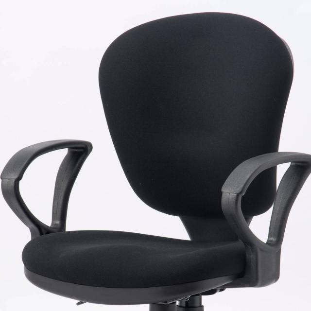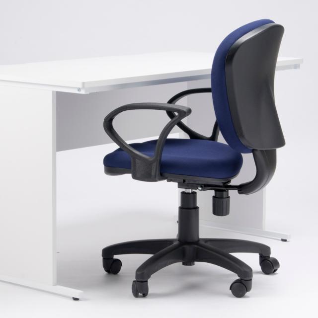 シンプルなデザインの肘付きオフィスチェア