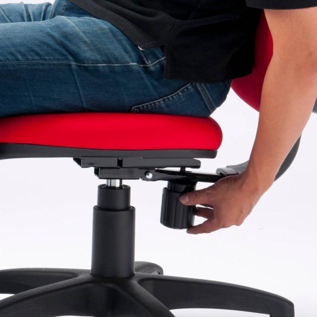 レバーをワンタッチするだけで簡単にできるガス圧リフト昇降機能付きです。体格や机などに合わせて12cmストローク(座面高42〜54cm)の調整が可能です。