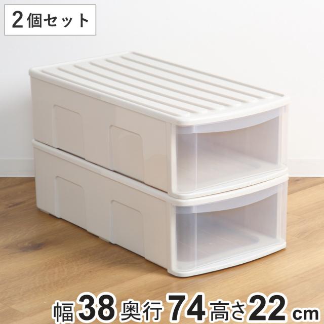 シンプルな収納ケース 奥行74cm浅型 2個セット