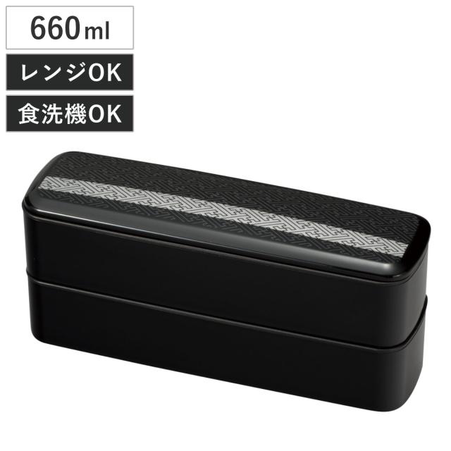 弁当箱 2段 660ml スリムランチ L 紗綾紋様 黒 ( スリム ランチボックス 二段 弁当 レンジ対応 食洗機対応 日本製 お弁当箱 弁当箱 2段)