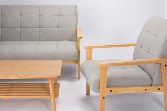 ●天然木とファブリック生地の組み合わせがオシャレな一人用ソファです。