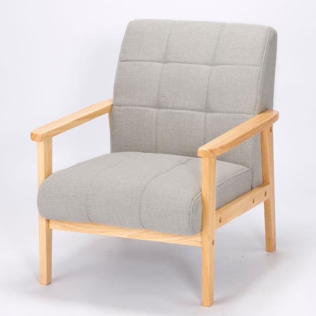 天然木とファブリック生地の組み合わせがオシャレな一人用ソファです。優しい手触りの木製肘フレームは、お部屋にやわらかい印象を与えます。コンパクトなサイズ感で、スペースの限られる空間や一人暮らしの方にもオススメです。
