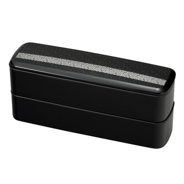 弁当箱 2段 660ml スリムランチ L 紗綾紋様 黒 ( スリム ランチボックス 二段 弁当 レンジ対応 食洗機対応 日本製 お弁当箱 紗綾 社会人 大人 レンジOK 食洗機OK お弁当 ランチ 2段弁当 撥水 )