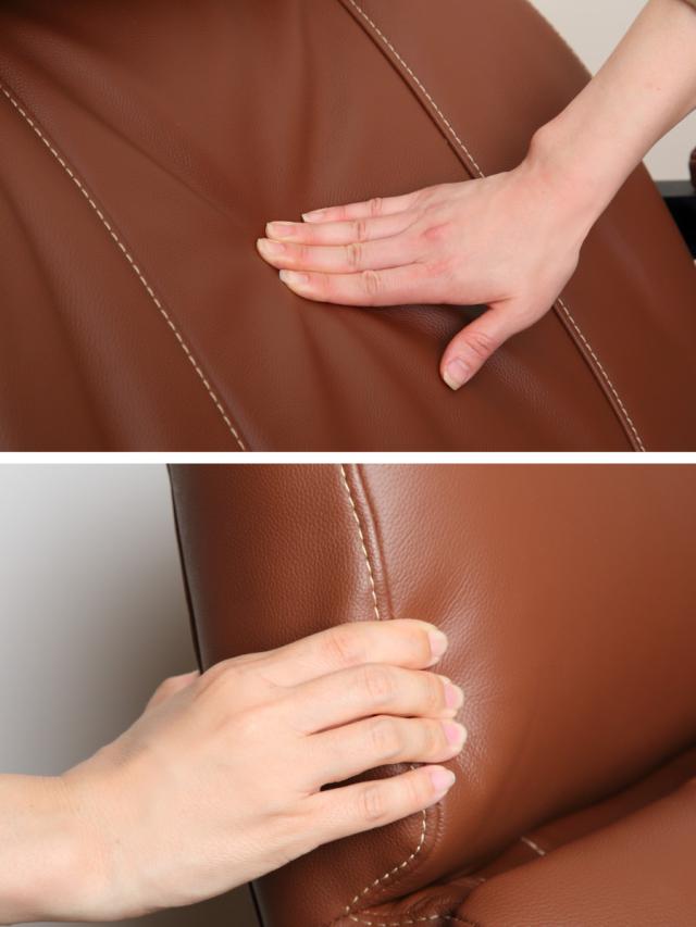 チェアの座面や肘掛けなど肌が触れる部分の張地に牛本革を使用しています。使うほどに柔らかく肌に馴染み、快適な座り心地を体感できます。