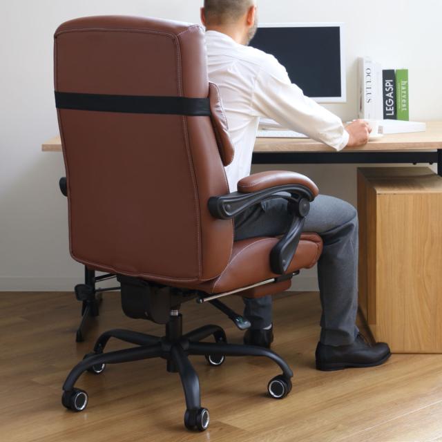 《 キャスター ブラウン お洒落 オシャレ インテリア 家具 会社 オフィス 自宅 書斎 在宅 リモート ゲーム 読書 快適 リラックス フットレスト 収納 腰当 ヘッドまくら クッション 昇降機能 デスクワーク 肘付き 肘置き アームレスト PVC ひじ掛け付き いす シンプル 大人 》