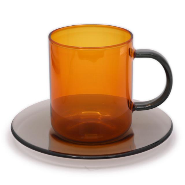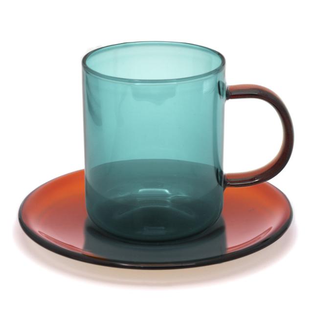 バイカラーでレトロな耐熱ガラスのマグカップ&ソーサー