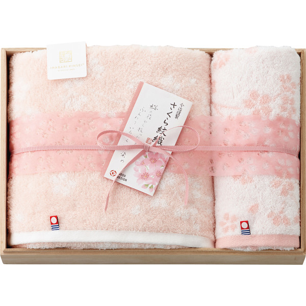 【送料無料】今治謹製 さくら紋織 桜染め バス・フェイスタオルセット(木箱入)