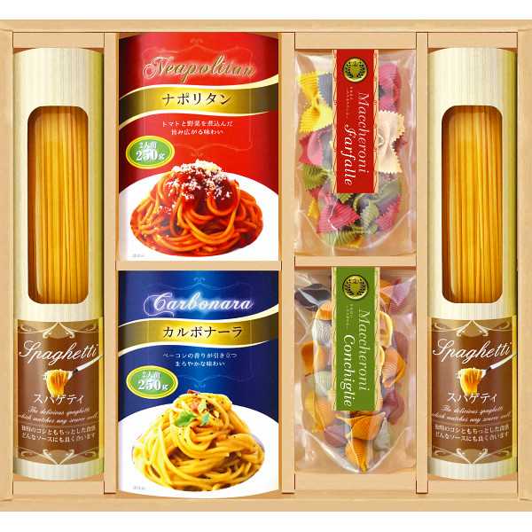 ●商品内容:スパゲティ130g×2、パスタソース(ナポリタン2人前・カルボナーラ2人前)各250g×各1、カラーパスタ・コンキリエ(プレーン・ほうれん草・ウコン・ビート・黒ニンジン)60g×1、カラーパスタ・ファルファーレ(卵・レッドチャード・オレガノ・ほうれん草・イカスミ)40g×1