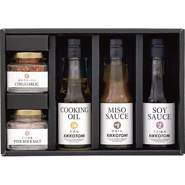 愛知県で初めて醤油を生産した、地元に愛される老舗醸造メーカー「キッコウトミ」の醤油や味噌などの調味料をバラエティに詰め合わせました。