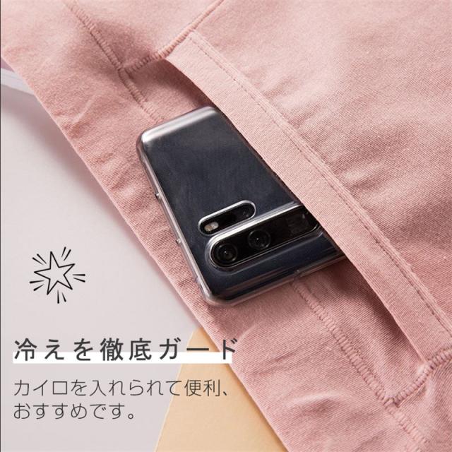 お腹の部分にポケットがついています。カイロを入れられて便利、寒い日や痛みがひどい時はカイロを入れてお腹を暖めるのがオススメです。