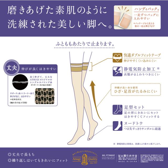 ストッキング レディース オーバーニー アツギ 素脚のように美しく 夏 ふともも丈 FT70002P 8足組 送料無料 atsugi アツギ まとめ買い セット ふともも サマー パンスト 夏用 婦人(05958)