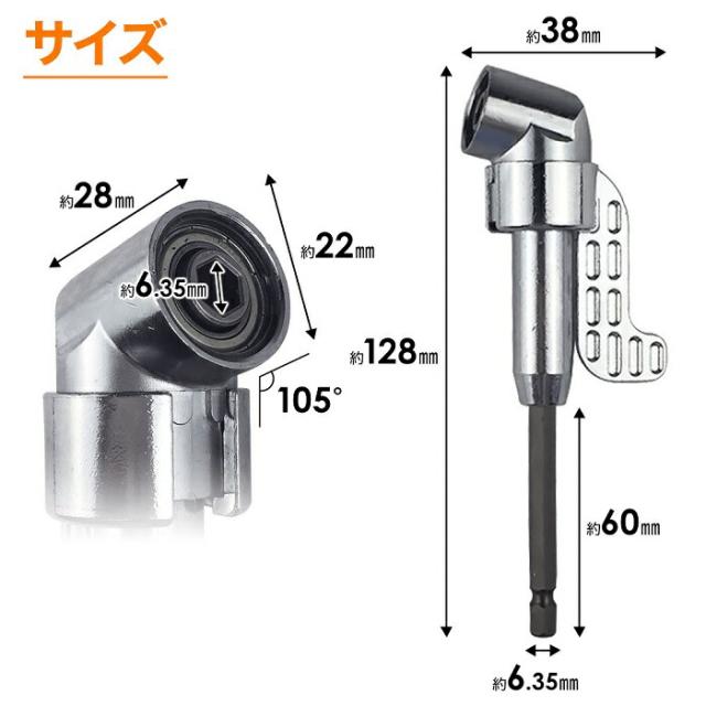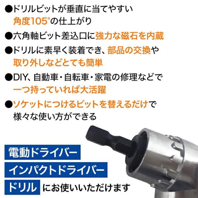 電動ドライバー L型 ロング 直角 インパクト 工具 ドリルビット アングルエクステンション ドリル用ビットアダプター ドライバーソケットアダプター 延長 変換 磁気 アングル 六角ビット 105度
