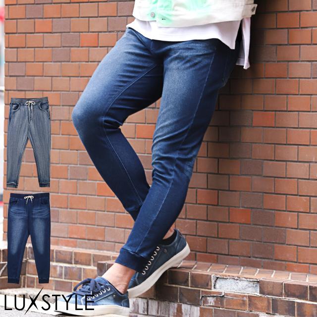 ジョガーパンツ メンズ イージーパンツ カットデニム ストレッチ リブパンツ スポーティ【カットデニムリブジョガーパンツ】 aa-2953