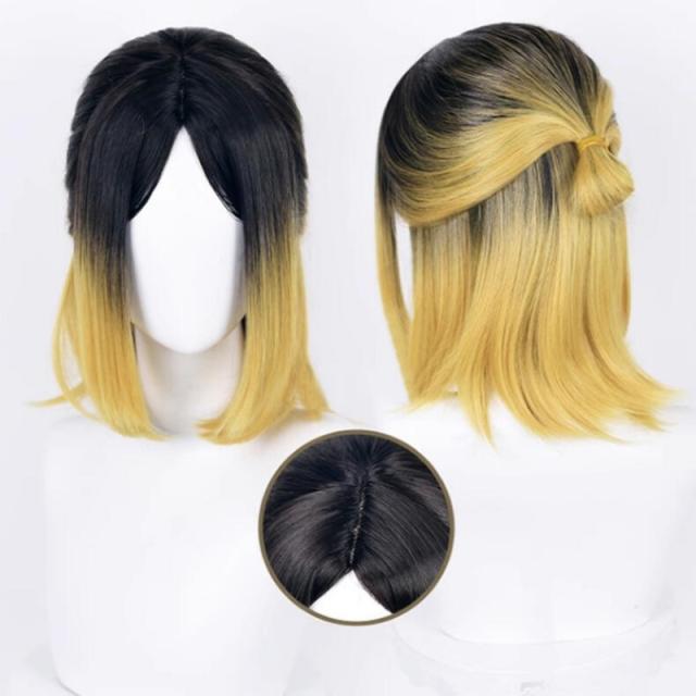 【送料無料】コスプレ 孤爪研磨 こづめけんま ハイキュー!! Haikyu!! コスプレウィグ ウィッグ かつら ウィッグネット付き 黒と金色のセミロングヘア