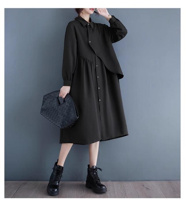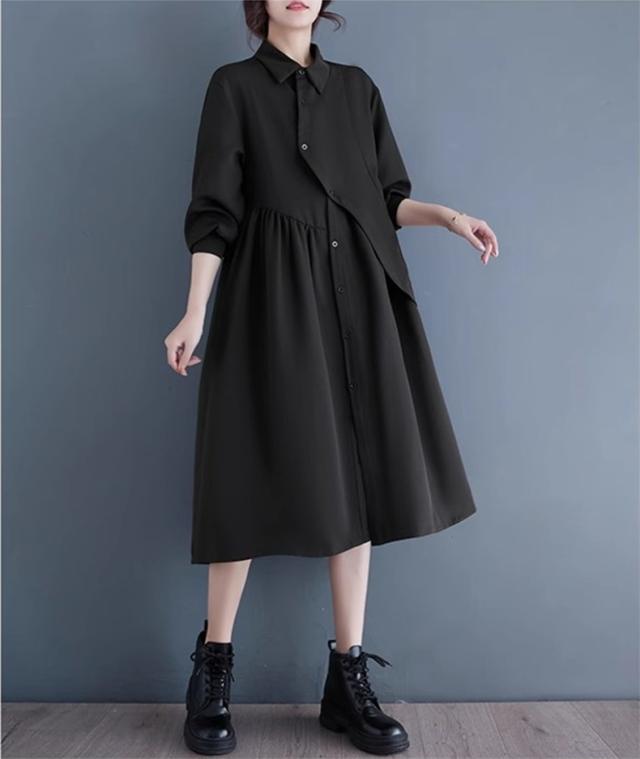 シャツワンピース レディース ロング丈 長袖 体型カバー ゆったり ドロストワンピース ナチュラル きれいめ 幅広いスタイリングが叶うシンプルデザイン