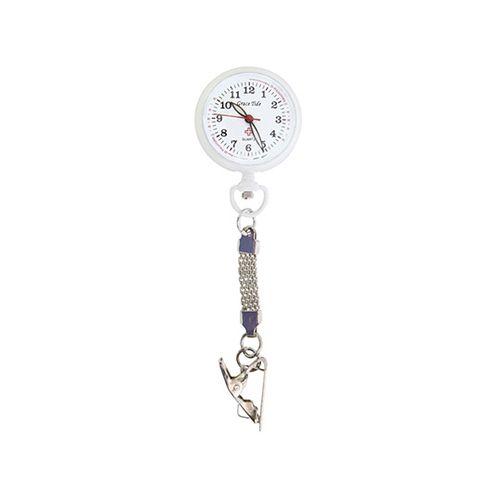ナースウォッチ(蓄光文字盤) ホワイト (1個)。文字盤全体が蓄光仕様です。脈拍計測目盛付きです。色:ホワイト文字盤サイズ(Φ10mm):33材質:合金、ガラス、ステンレス全長:103mm重量:約20g電源:SR626ボタン電池(テスト用付属)クリップ付き※電池の早期消耗を避けるため、時計は止まった状態でお届けします。ストッパーを外してリユーズを押し下げると時計が動き始めますので、時間合わせをお願いします。