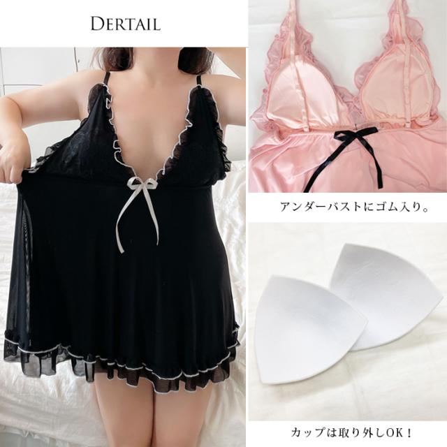 大きいサイズ レディース ベビードール スリップ キャミワンピ ネグリジェ ナイトウェア ブラック ピンク LL 3L 4L 5L (r6651)
