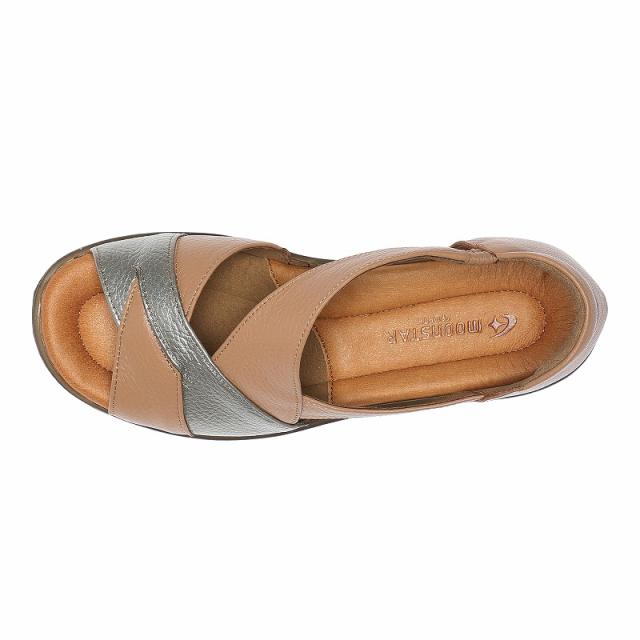 送料無料 ムーンスター スポルス レディース サンダル SP5943 ライトブラウン 国産 ふんわりとした履き心地 天然皮革 衝撃吸収 軽量設計 べステック 日本製 新学期 日傘