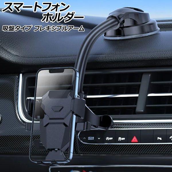 スマートフォンホルダー ブラック ABS製 吸盤 フレキシブルアーム 汎用 車載用 お好みの場所に貼り付けるだけ! AP-AS1001-BK