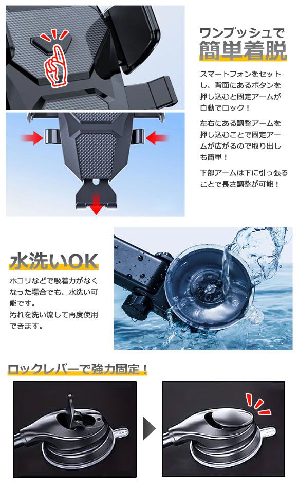 ガラス面やダッシュボードに装着可能な車載ホルダーです。