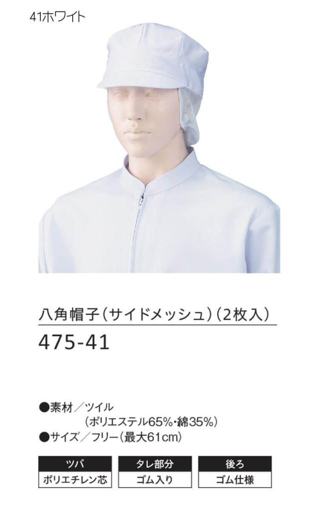 食品工場白衣 八角帽子 475-41 2枚入 カゼン KAZEN フードファクトリー 衛生帽子 制服 ユニフォーム