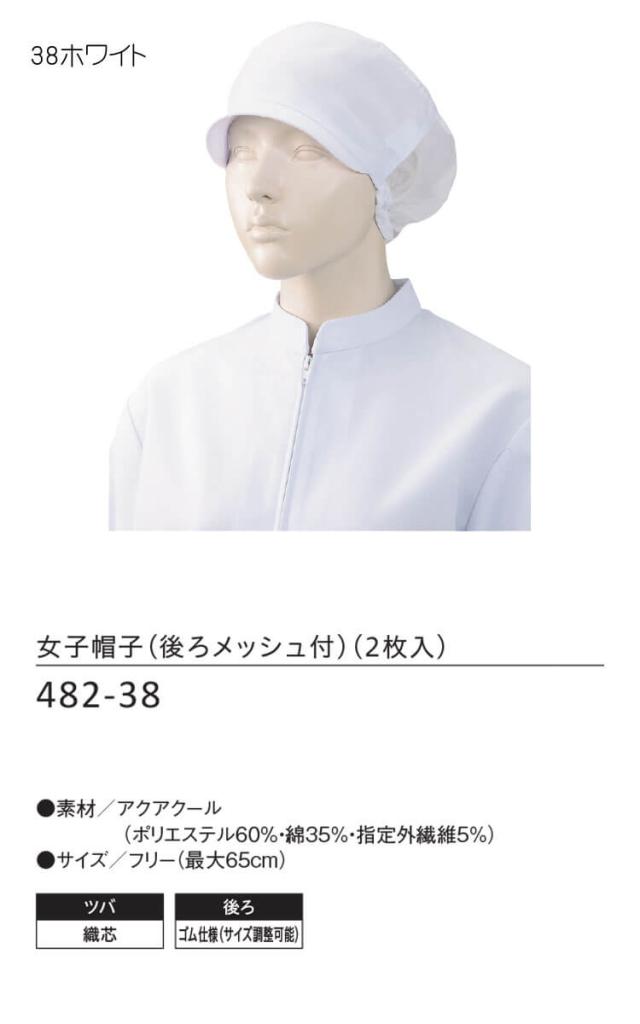 食品工場白衣 女子帽子 482-38 2枚入 カゼン KAZEN フードファクトリー 衛生帽子 制服 ユニフォーム