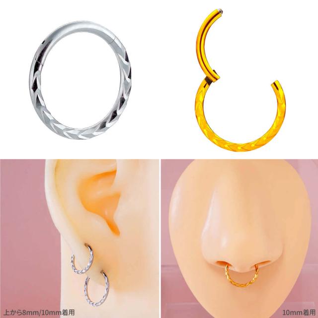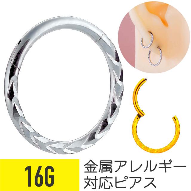 カット デザイン ワンタッチ セグメントリング 16G サージカルステンレス セプタム 鼻ピアス 軟骨ピアス ボディピアス クリッカー
