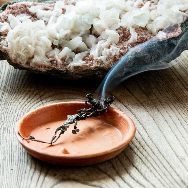 炭の上に置いて焚くこともできますが、少し焚く際は葉にライターで着火するだけで、しばらくは煙が出てくれます。こちらの商品はメール便配送ができる商品です