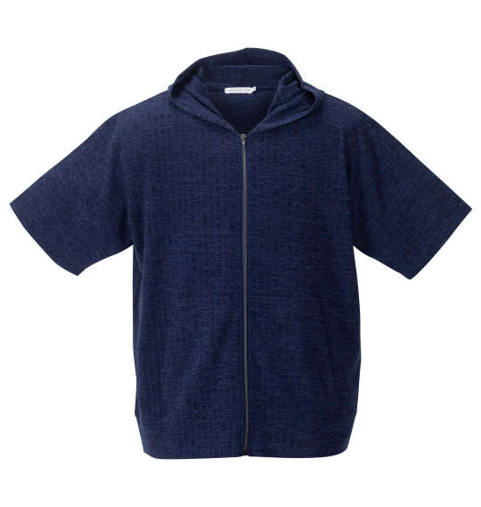大きいサイズ メンズ launching pad 針抜き ストライプ 半袖 フルジップ パーカー + 半袖 Tシャツ ネイビー杢 × ホワイト 1258-4252-1 3L 4L 5L 6L