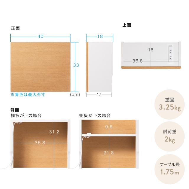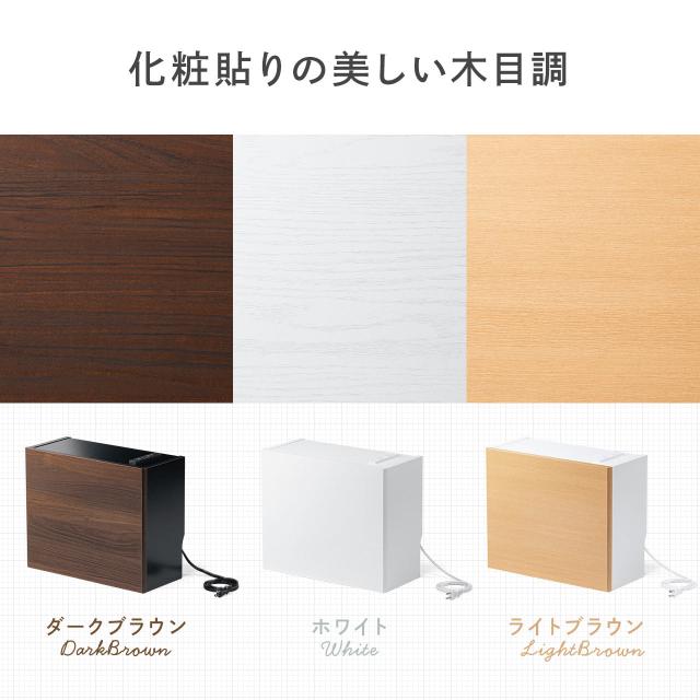 ルーター収納ボックス ケーブルボックス 幅40cm 高さ33cm コンセント付き 木製 スリム 壁面収納 電話台 ダークブラウン ライトブラウン ホワイト[200-CB044]