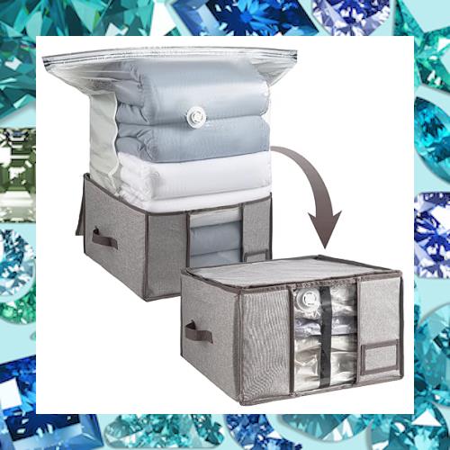 【便利なデザイン】布団圧縮ボックスが一目で分かる便利な透明窓付きます、内部には留め具用のカラビナも付いています。カードスロットのデザインは記録に便利で、衣服を見つけるのがより便利です。革新的なダブルボーンジッパーを使用し、チャックを閉じると灰色に見えるので開閉の確認に超便利です。 両側に取っ手があり、使用時に持ち上げやすくなっています。